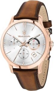 Los relojes Maserati con correa de cuero apuestan por un estilo más clásico y refinado. El cuero aporta calidez, comodidad y un toque tradicional que nunca pasa de moda. Son relojes pensados para quienes valoran la elegancia discreta y la sensación de llevar una pieza con carácter artesanal.
