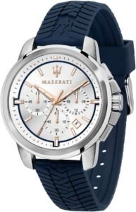 Los relojes Maserati con correa de silicona están pensados para un estilo de vida más activo. Son modelos cómodos, ligeros y resistentes, ideales para quienes priorizan la funcionalidad sin renunciar al diseño. La silicona aporta flexibilidad y un ajuste cómodo, perfecto para el uso diario o para actividades más dinámicas.